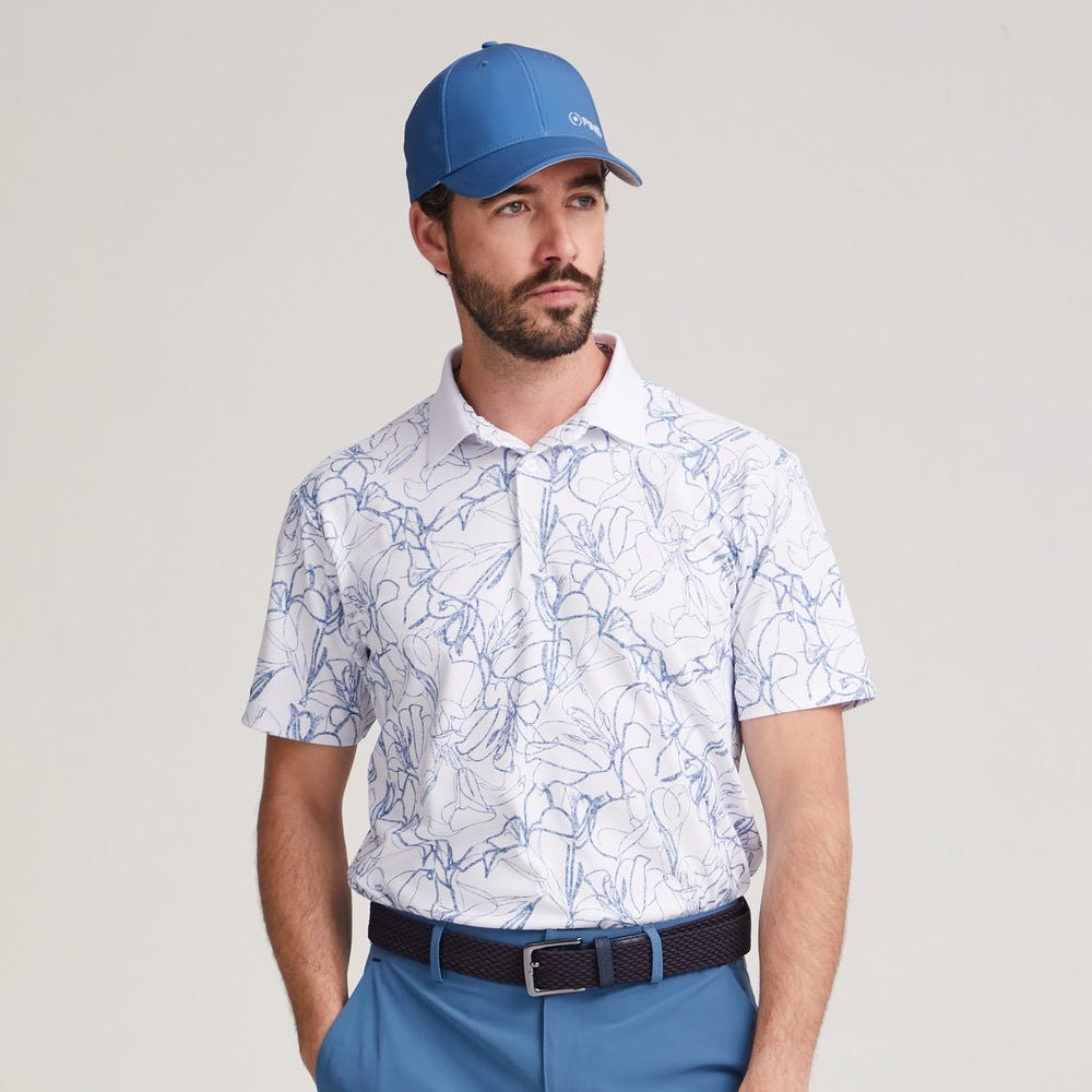 Redéfinissez votre style sur le parcours avec le polo imprimé Orlando pour homme, disponible en blanc/stellar. Orné d’un imprimé feuillage contemporain qui lui confère une esthétique fraîche et moderne, ce polo associe un tissu piqué respirant à des détails techniques pour un confort optimal. Son col côtelé et sa patte de boutonnage à 3 boutons lui confèrent un charme intemporel, tandis que sa construction boutonnée dissimulée assure une silhouette épurée et ajustée. Orné du logo PING, ce polo est l’alliance parfaite entre innovation et élégance pour le golfeur exigeant.